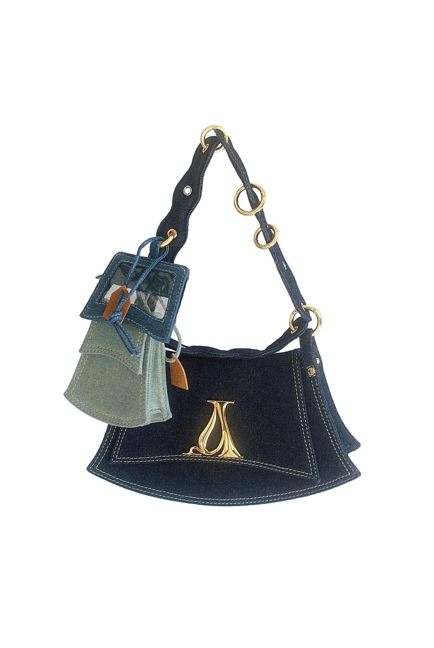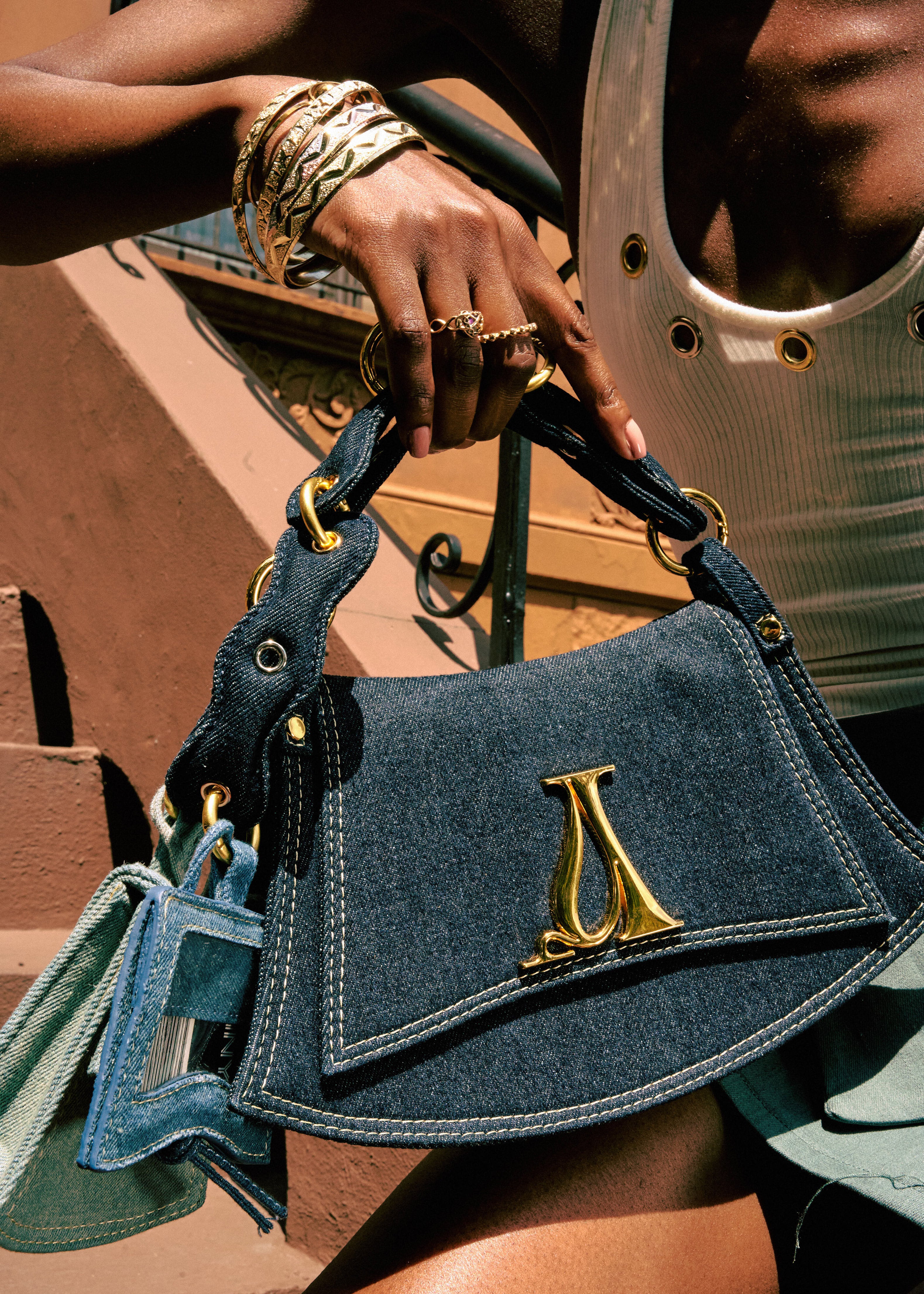 The Jewelet Bag is an elevated statement piece, designed to marry modern elegance with uncompromising function. Meticulously crafted with Jewelet’s signature modular charms, this bag transforms with you, offering limitless styling possibilities that feel as individual as your own jewelry collection. Its soft leather and canvas interior is paired with premium denim in three refined shades, creating a sophisticated contrast of texture and tone. Finished with a gleaming gold logo, custom clasp rings, and multi-toned grommets in gold, silver, and rose gold, The Jewelet Bag is more than an accessory— it's a collectible work of art, reimagining what it means to carry luxury every day.