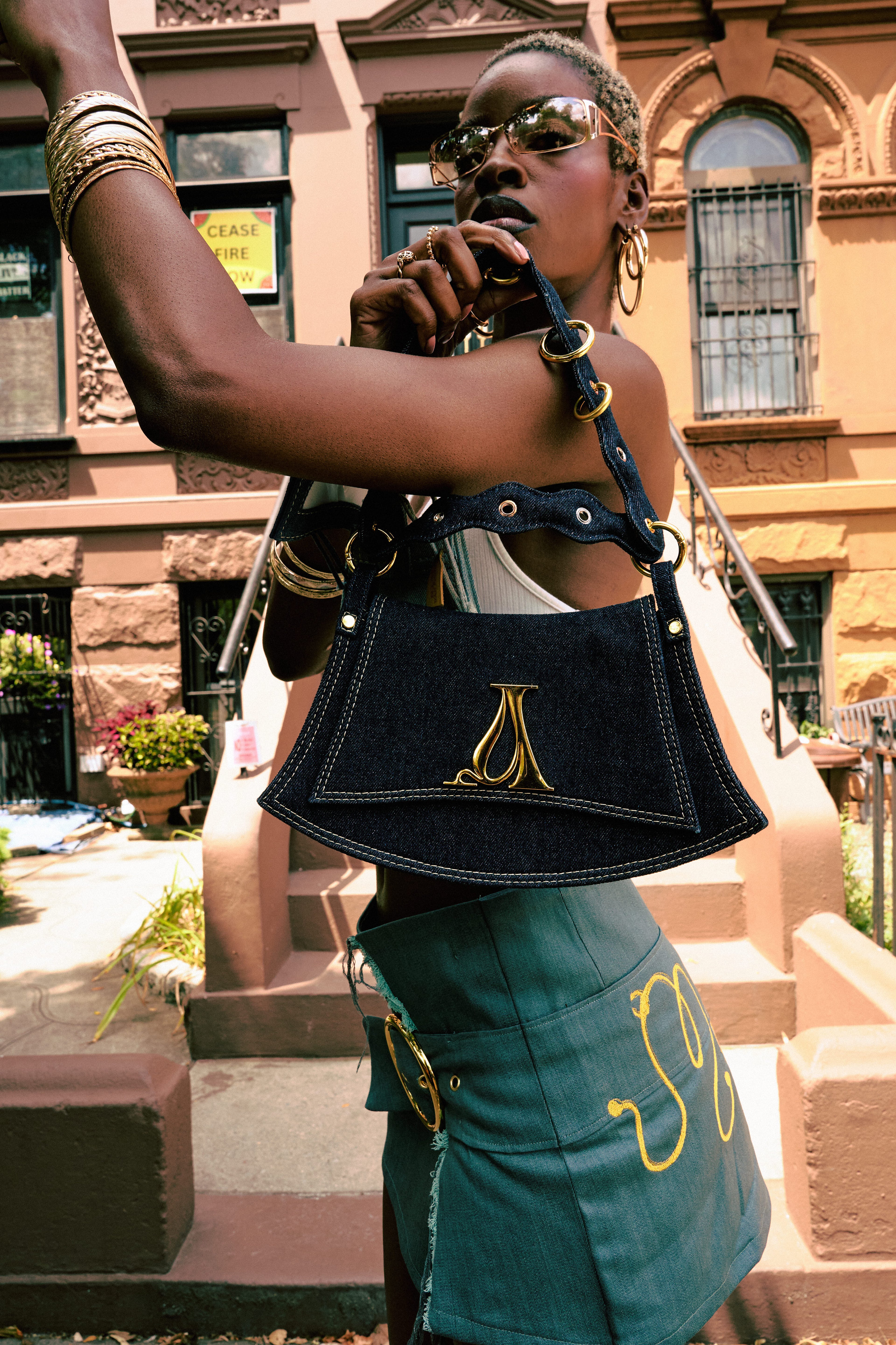 The Jewelet Bag is an elevated statement piece, designed to marry modern elegance with uncompromising function. Meticulously crafted with Jewelet’s signature modular charms, this bag transforms with you, offering limitless styling possibilities that feel as individual as your own jewelry collection. Its soft leather and canvas interior is paired with premium denim in three refined shades, creating a sophisticated contrast of texture and tone. Finished with a gleaming gold logo, custom clasp rings, and multi-toned grommets in gold, silver, and rose gold, The Jewelet Bag is more than an accessory— it's a collectible work of art, reimagining what it means to carry luxury every day.